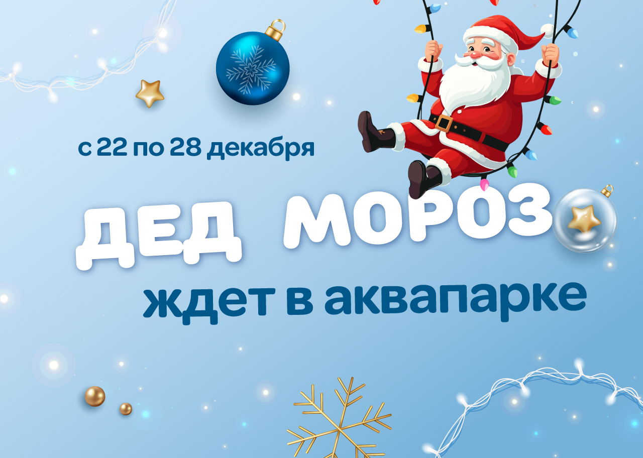 С 22 по 27 декабря наш Дед Мороз со своим большим мешком подарков встречает маленьких любителей водных развлечений: